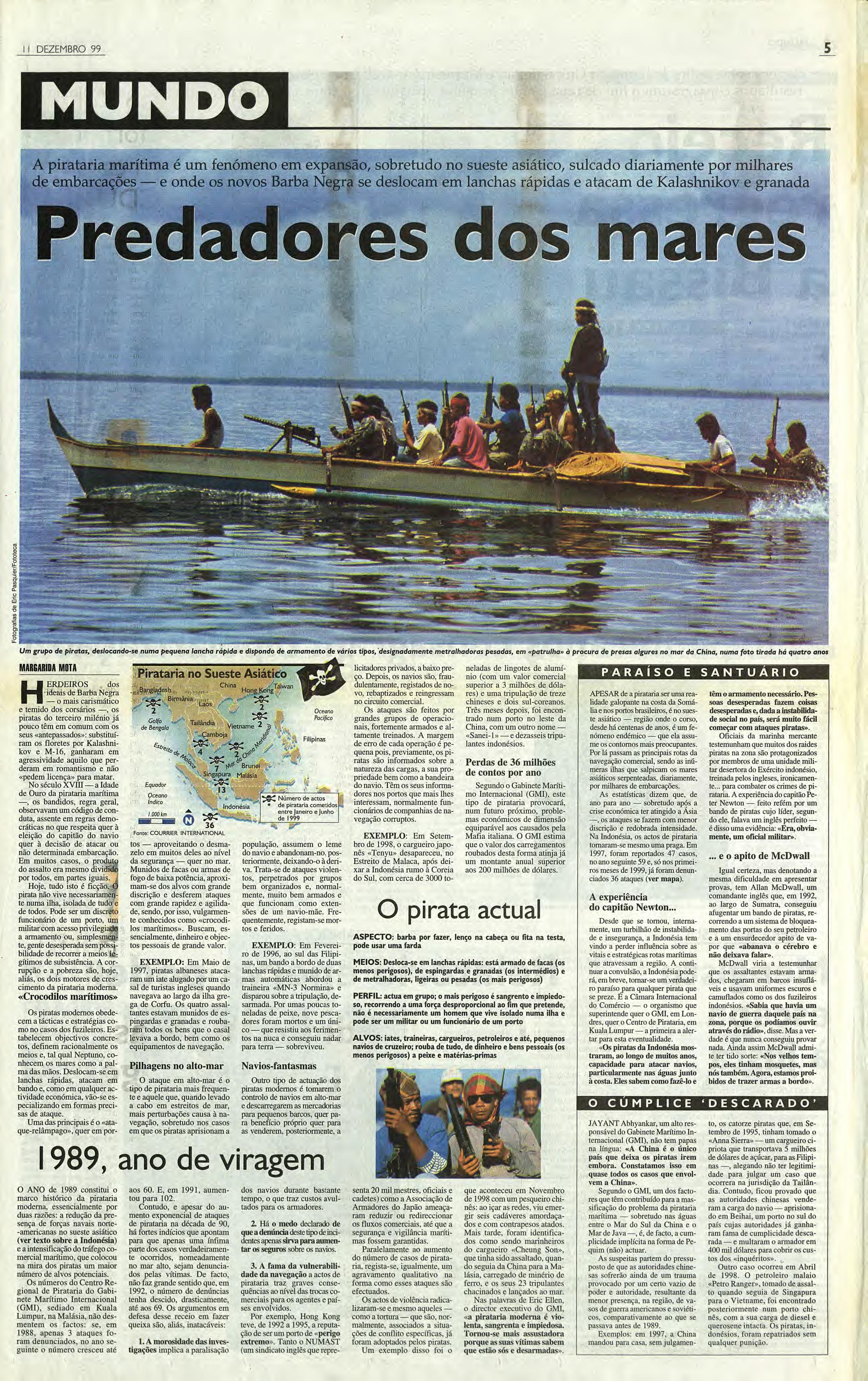 Desde que se tornou, internamente, um turbilhão de instabilidade e insegurança, a Indonésia tem vindo a perder influência sobre as vitais e estratégicas rotas marítimas que atravessam a região. A continuar a convulsão, a Indonésia poderá, em breve, tornar-se um verdadeiro paraíso para qualquer pirata que se preze. É a Câmara Internacional do Comércio — o organismo que superintende quer o GMI, em Londres, quer o Centro de Pirataria, em Kuala Lumpur — a primeira a alertar para esta eventualidade.