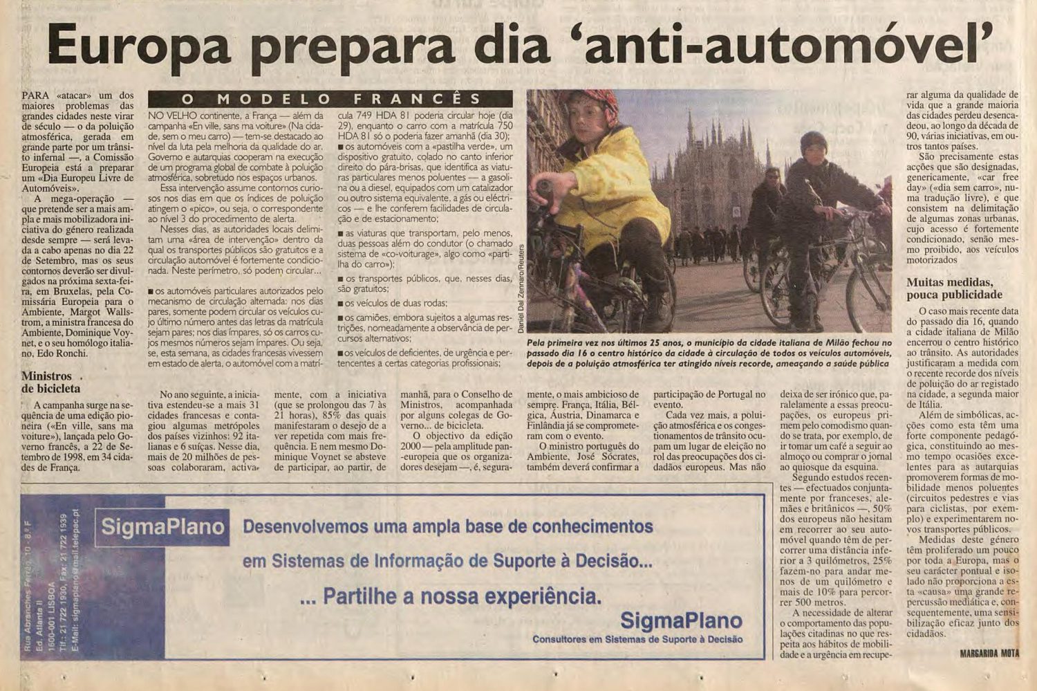 Para «atacar» um dos maiores problemas das grandes cidades neste virar de século — o da poluição atmosférica, gerada em grande parte por um trânsito infernal —, a Comissão Europeia está a preparar um «Dia Europeu Livre de Automóveis».