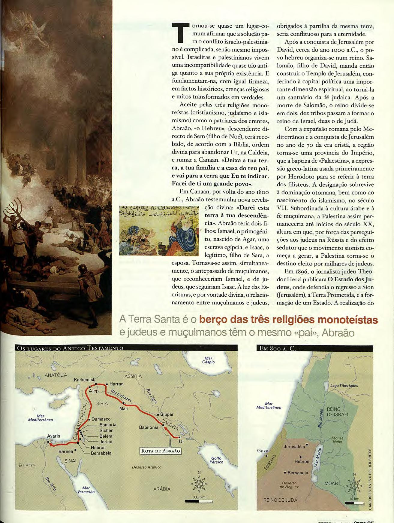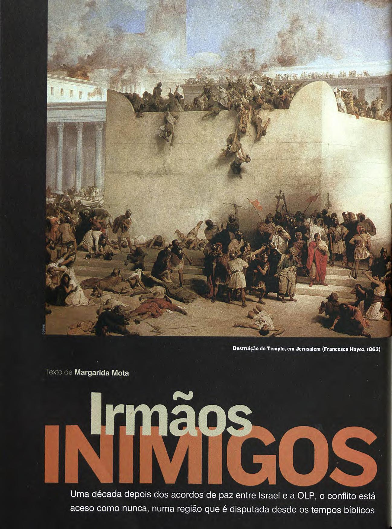 Quase quatro mil anos após a revelação divina a Abraão, o conflito israelo-palestiniano permanece de resolução difícil. Os palestinianos continuam sem Estado, os israelitas sem segurança. Ambos sem paz. E sempre inimigos, apesar de irmãos — ou não fossem ambos descendentes de Sem e, por isso, semitas.
