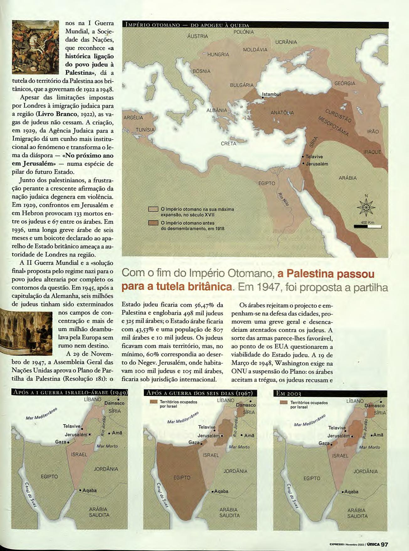 Quando, em 1914, rebenta a I Guerra Mundial, a Palestina é habitada por 85 mil judeus e cerca de 700 mil árabes, muçulmanos e cristãos. Trinta anos antes, os judeus não chegavam aos 25 mil.
