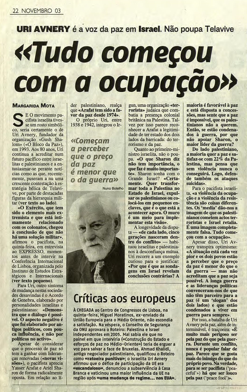 Artigo publicado no “Expresso”, a 22 de novembro de 2003