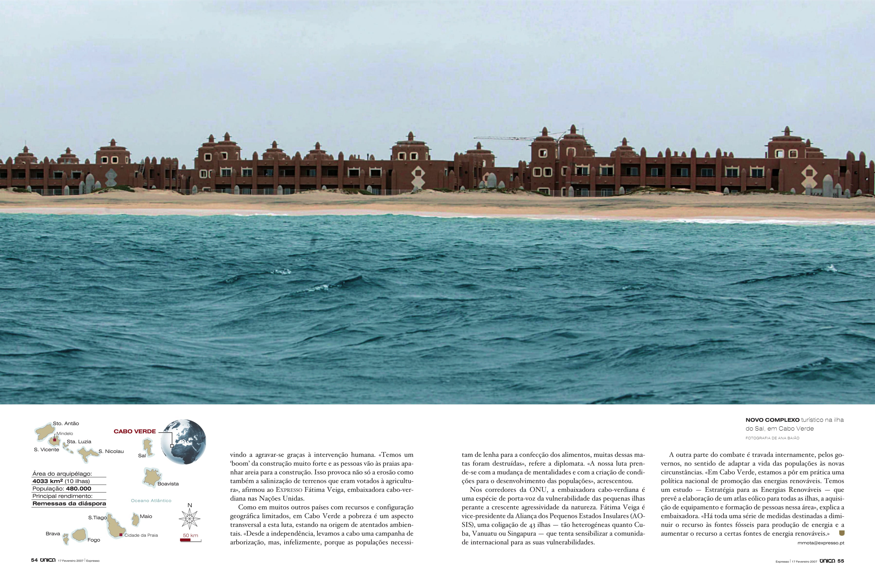 Afectado por uma seca profunda há várias décadas, o arquipélago de Cabo Verde é a prova de como o apetite devorador dos oceanos não ameaça somente as ilhas do Pacífico, do Índico ou das Caraíbas. A erosão da zona costeira é uma realidade que tem vindo a agravar-se graças à intervenção humana. “Temos um ‘boom’ da construção muito forte e as pessoas vão às praias apanhar areia para a construção. Isso provoca não só a erosão como também a salinização de terrenos que eram votados à agricultura”, afirmou ao “Expresso” Fátima Veiga, embaixadora cabo-verdiana nas Nações Unidas.