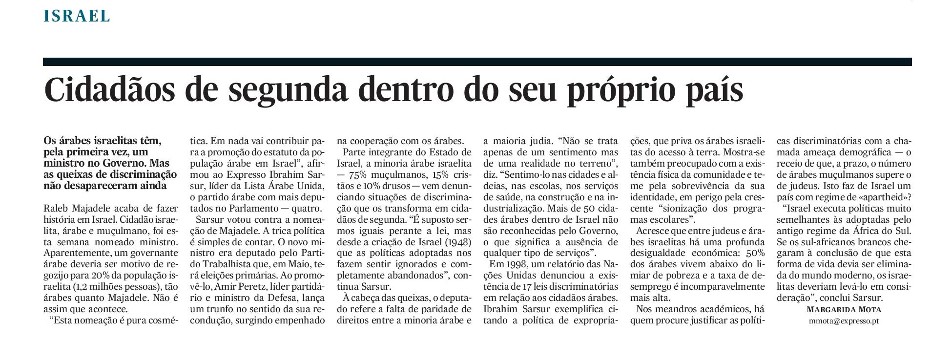 Artigo publicado na revista Única do “Expresso”, a 17 de fevereiro de 2007