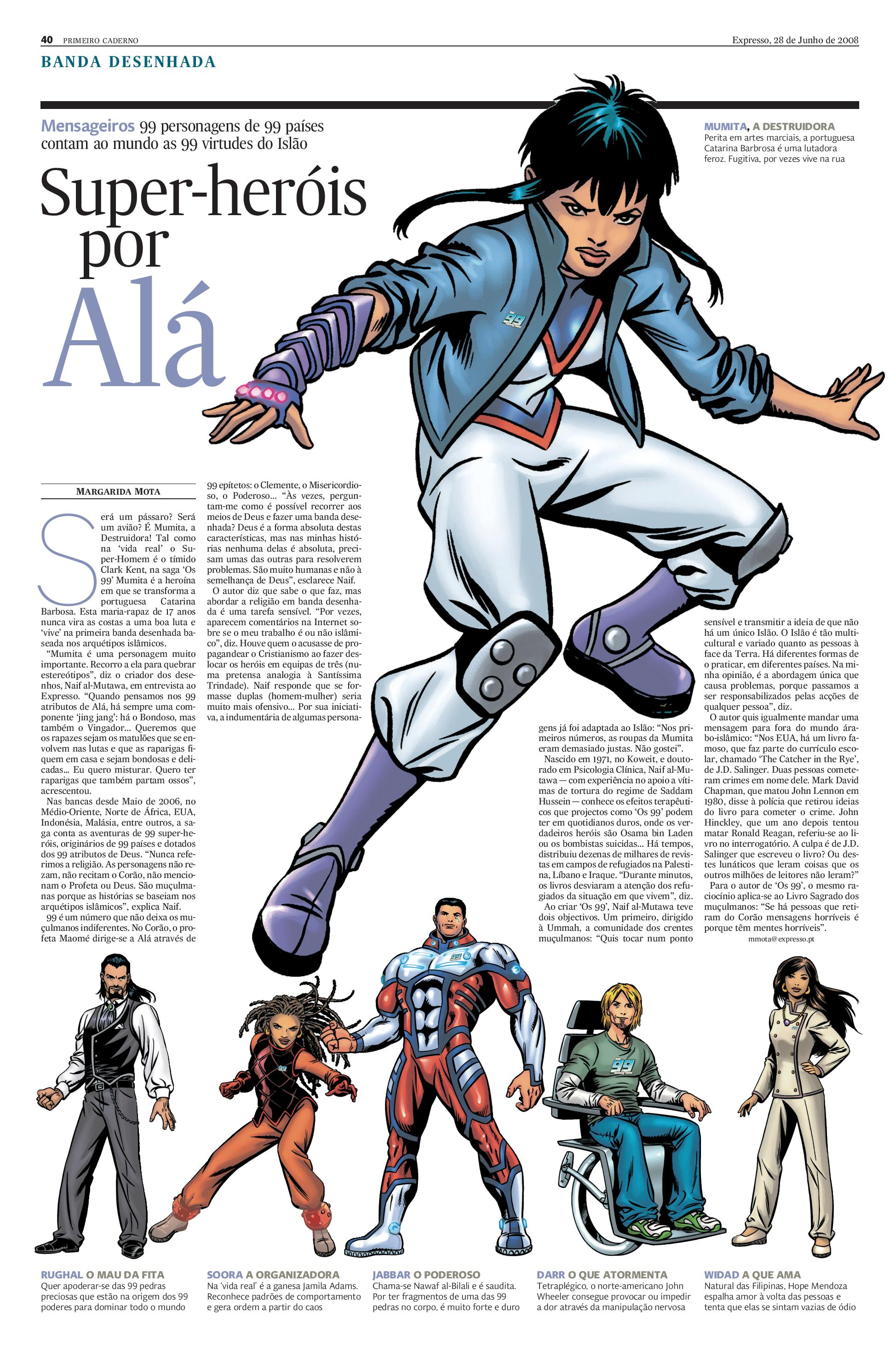 Será um pássaro? Será um avião? É Mumita, a Destruidora! Tal como na ‘vida real’ o Super-Homem é o tímido Clark Kent, na saga ‘Os 99’ Mumita é a heroína em que se transforma a portuguesa Catarina Barbosa. Esta maria-rapaz de 17 anos nunca vira as costas a uma boa luta e ‘vive’ na primeira banda desenhada baseada nos arquétipos islâmicos.