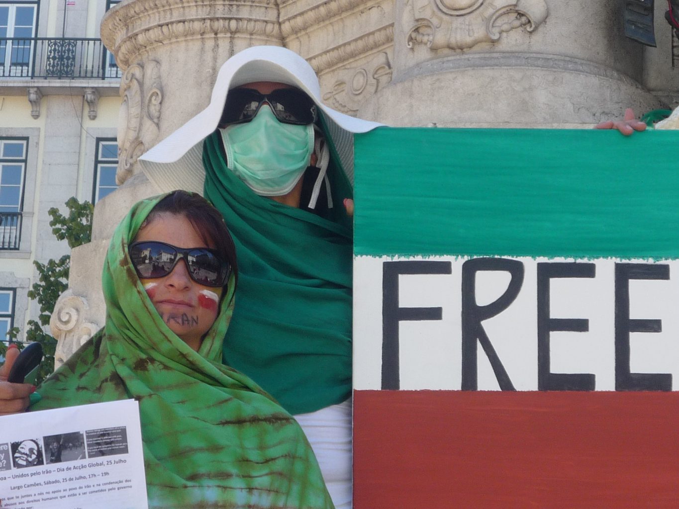 Eram cerca de seis da tarde de sábado e a manifestação de solidariedade para com o povo do Irão, no Largo Camões, em Lisboa, já levava uma hora de rua. A iniciativa inseriu-se no Dia Global de Acção que, ontem, se assinalou um pouco por todo o mundo. Cerca de 8000 pessoas reuniram-se em Paris, 4000 em Estocolmo, 3000 em Amesterdão, mais de 2500 em Washington DC e Nova Iorque, 2000 em Londres e… cerca de 30 em Lisboa.