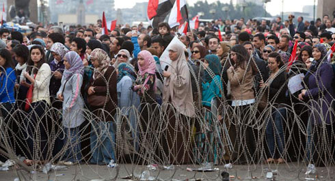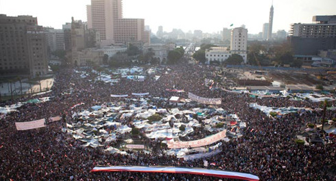 A praça Tahrir encheu hoje para aquela que foi a maior manifestação anti-Mubarak desde o início dos protestos, a 25 de janeiro. Desde a manhã, longas filas de pessoas estendiam-se pelas ruas circundantes à praça e pela Qasr al-Nil, a ponte sobre o rio Nilo mais próxima da praça. Projetava-se uma jornada de luta memorável.