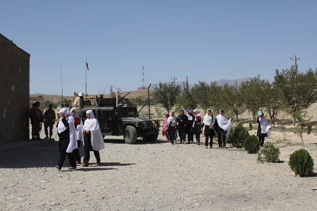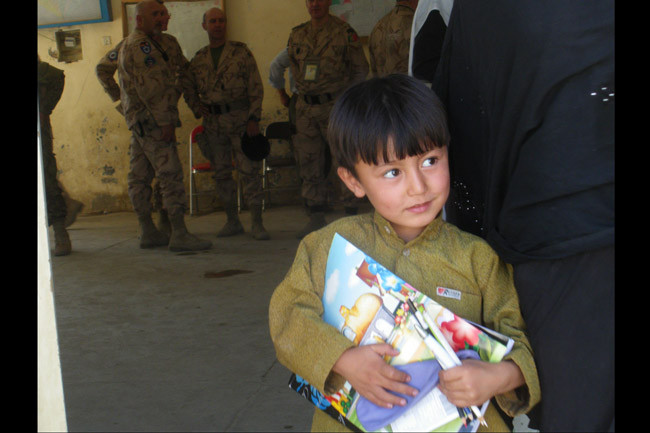 A Escola Secundária de Pol-e-Charki tem cerca de 5500 alunos, de ambos os sexosOs alunos estão divididos por 140 turmas, ainda que não haja salas de aula para todos…Muitos alunos têm aulas ao ar livre, uns protegidos por uma cobertura de zinco, outros debaixo de SolA escola não tem eletricidade nem saneamento básico. Não existe qualquer espaço de lazerO material escolar foi angariado em Portugal, junto de empresas, instituições e particularesO comandante do contingente português, coronel Pedro Lopes, faz uma entrega simbólica ao diretor da escolaSituada a 5 km de Cabul, a aldeia de Pol-e-Charki é habitada sobretudo por militares afegãosNo campo militar de Pol-e-Charki, o contingente português dá formação a recrutas afegãosSegundo a ONU, no Afeganistão, a média de anos de escolaridade é de 3,3Para muitas afegãs, ir à escola implica desafiar os códigos sociais vigentesEm 155º lugar no Índice de Desenvolvimento Humano da ONU, o Afeganistão é um dos países mais pobres do mundoA esperança de vida à nascença de um afegão é de 44,6 anos