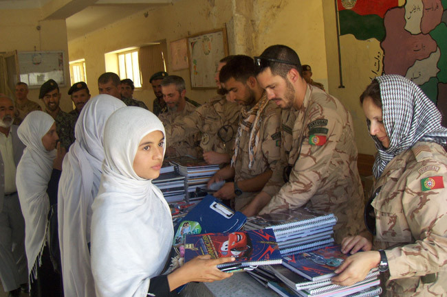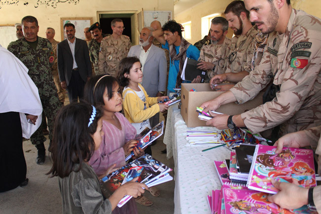 A 27 de julho, o contingente português no Afeganistão distribuiu material escolar numa escola carenciada, perto de Cabul. Os bens foram recolhidos em Portugal. Fotogaleria