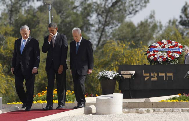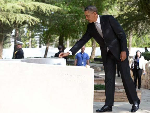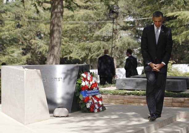 No Monte Herzl, Obama visita as campas do líder sionista Theodore Herzl e do ex-primeiro-ministro Yitzhak Rabin.