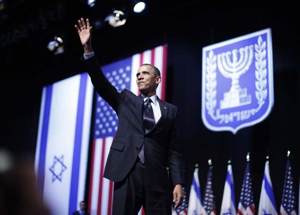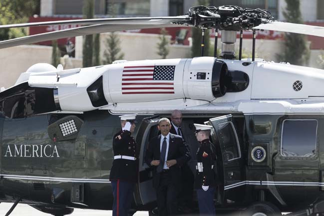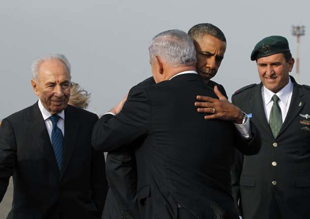 O Air Force One que transporta Barack Obama aterra no Aeroporto Ben Gurion, em Telavive, cerca das 12h15 (10h15 em Lisboa). Obama tem a recebê-lo o Presidente israelita, Shimon Peres, e o primeiro-ministro Benjamin Netanyahu. O secretário de Estado John Kerry acompanha-o. Michelle Obama ficou na Casa Branca. A primeira dama não gosta de viajar para o estrangeiro, deixando as filhas para trás, em tempo escolar.