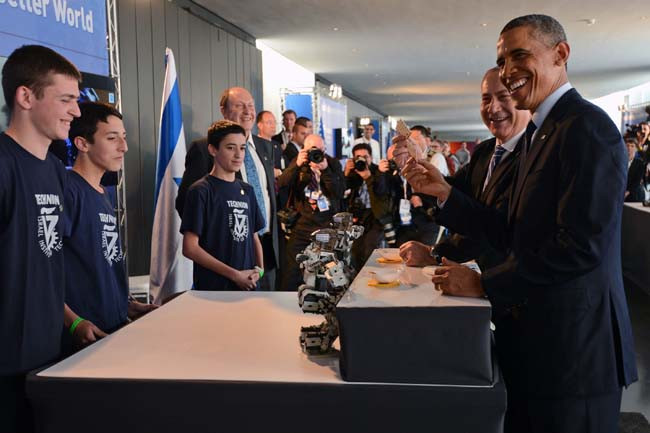 Visita a uma bateria da Cúpula de ferro, colocada no aeroporto para este efeito. O programa da visita divulgado pela Casa Branca explica que a Cúpula de Ferro é um sistema defensivo anti-missil desenvolvido por Israel e produzido pelos EUA que “salvou incontáveis vidas israelitas” Segundo o “Times of Israel”, a Cúpula de Ferro intercetou 84% dos foguetes disparados desde a Faixa de Gaza, no último conflito, em novembro passado.