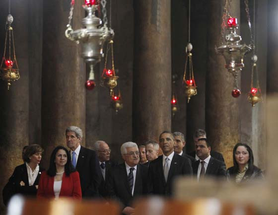 Obama volta a entrar no território palestiniano da Cisjordânia para uma visita à Igreja da Natividade, em Belém, onde, segundo a tradição cristã, Jesus Cristo nasceu. O sítio foi incluído na Lista de Património da UNESCO em junho passado, após a organização ter aceite a Palestina como Estado membro de pleno direito.