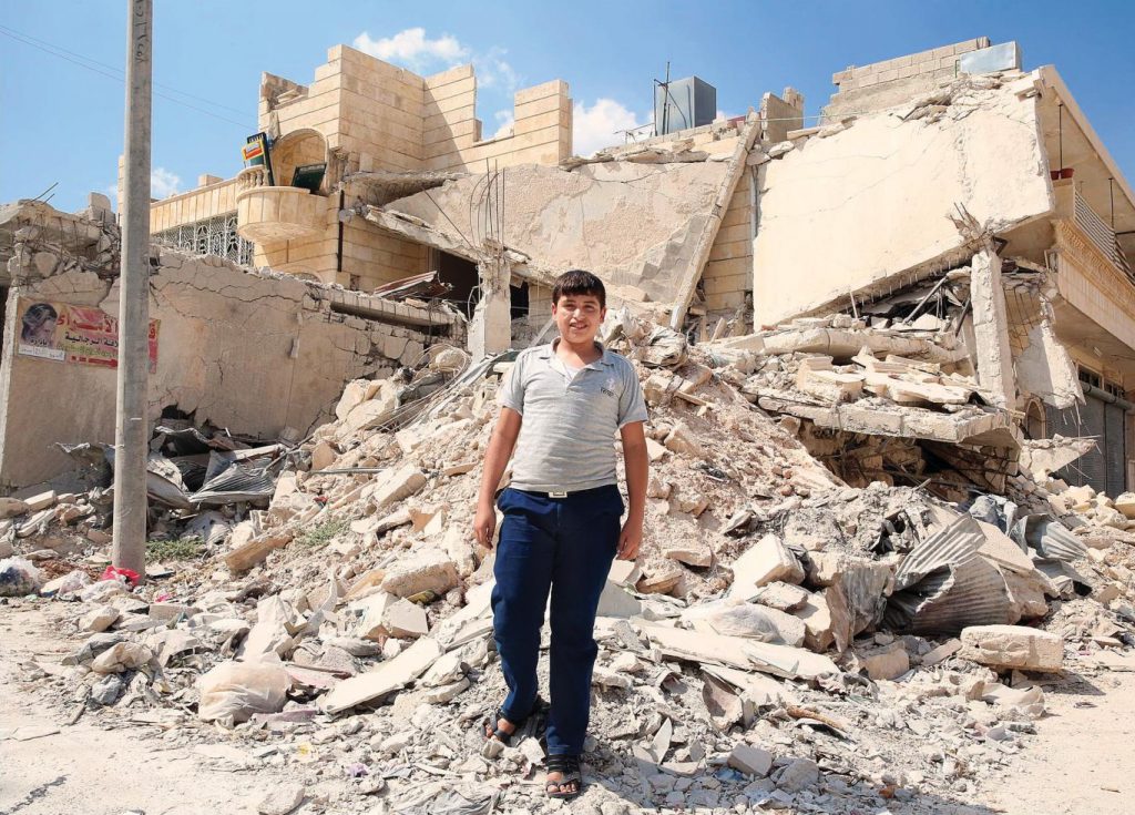 Majad posa junto às ruínas em que se transformou a sua casa, bombardeada, e onde morreram oito pessoas GABRIEL CHAIM