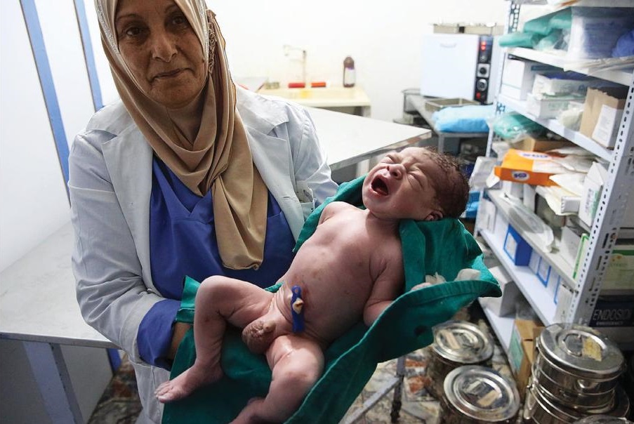 Uma criança acaba de nascer num hospital onde todos os feridos de um bombardeamento ali perto acabavam de morrer GABRIEL CHAIM
