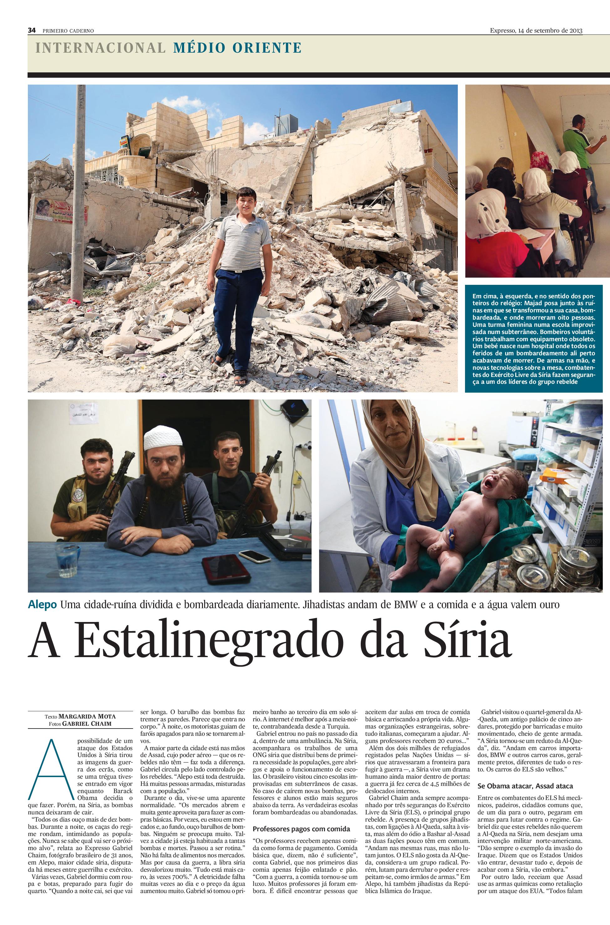 “Todos os dias ouço mais de dez bombas. Durante a noite, os caças do regime rondam, intimidando as populações. Nunca se sabe qual vai ser o próximo alvo”, relata ao Expresso Gabriel Chaim, fotógrafo brasileiro de 31 anos, em Alepo, maior cidade síria, disputada há meses entre guerrilha e exército.
