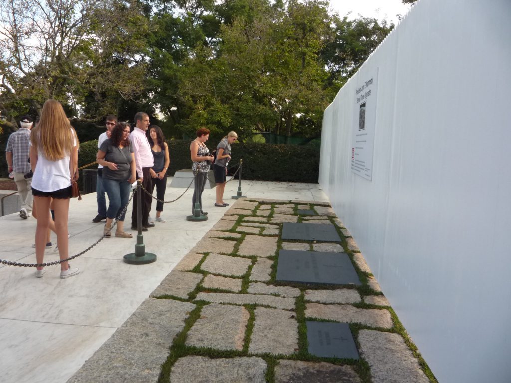 As campas de John e Jackie Kennedy são dos locais mais visitados, no Cemitério. Ao lado, permanentemente acesa, está a Chama Eterna. O local está a sofrer obras MARGARIDA MOTA