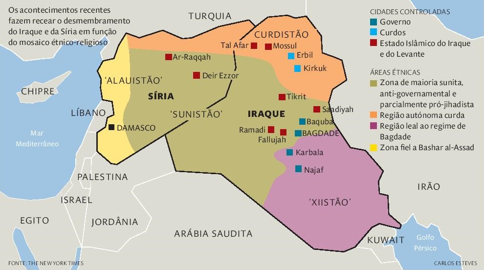 No Iraque e na Síria, essa unidade é, porém, cada vez mais artificial. A Síria “está desintegrada. Assad controla o terço territorial mediterrânico, os curdos autoproclamaram um estado autónomo a norte e os sunitas (terroristas ou militantes anti-Assad) o resto”, diz Pires de Lima. “A manutenção de Assad no poder pode ser um ponto de partida para uma investida militar de ocidente para leste. Nesse sentido, a integridade síria pode ser um capítulo em aberto. Julgo ser o quadro que mais agrada aos EUA, UE, Rússia, Irão e Turquia. A questão é a reação da Arábia Saudita e de grandes financiadores sunitas como o Qatar.”
