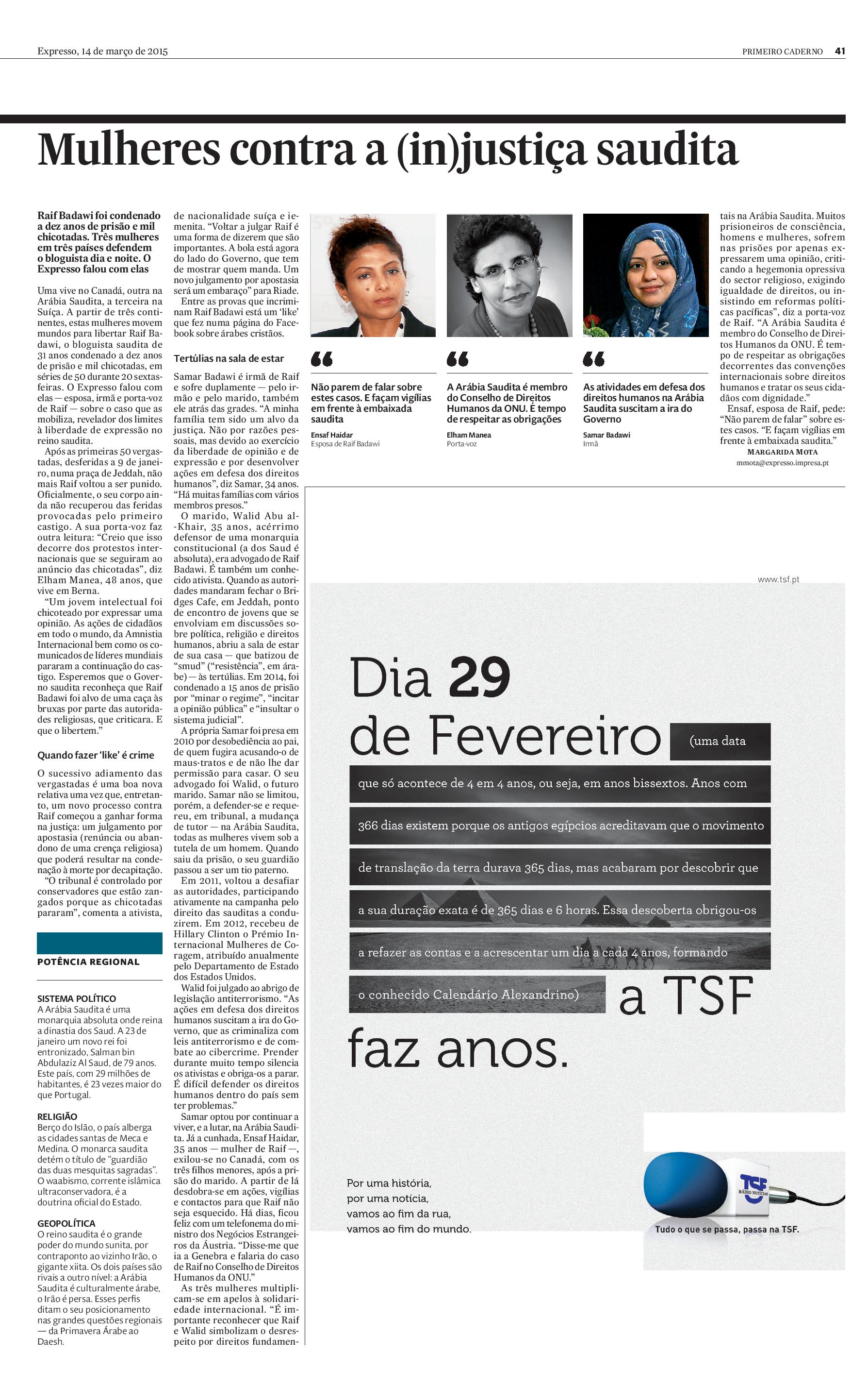 Artigo publicado no “Expresso”, a 14 de março de 2015
