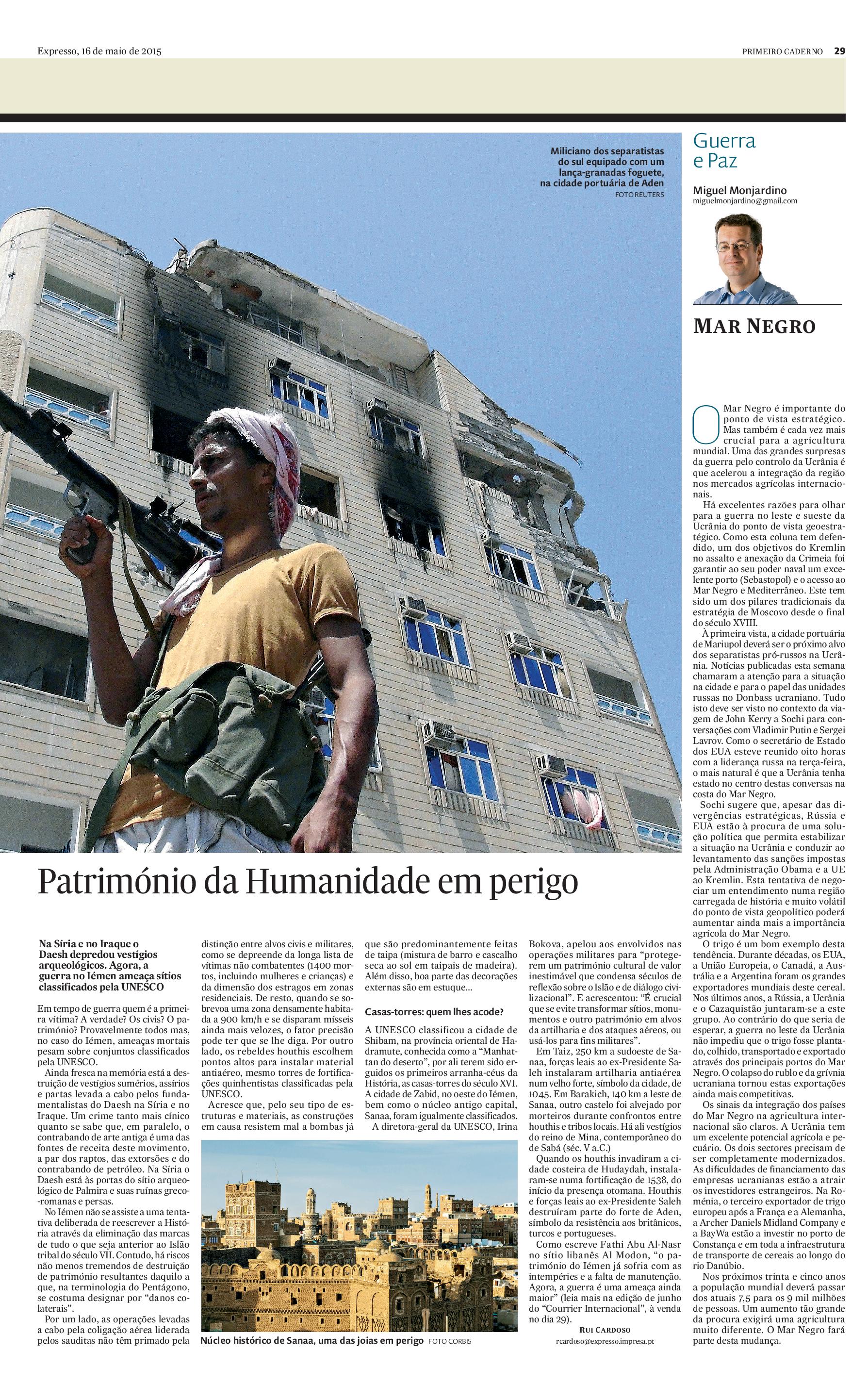 Artigo publicado no “Expresso”, a 16 de maio de 2015