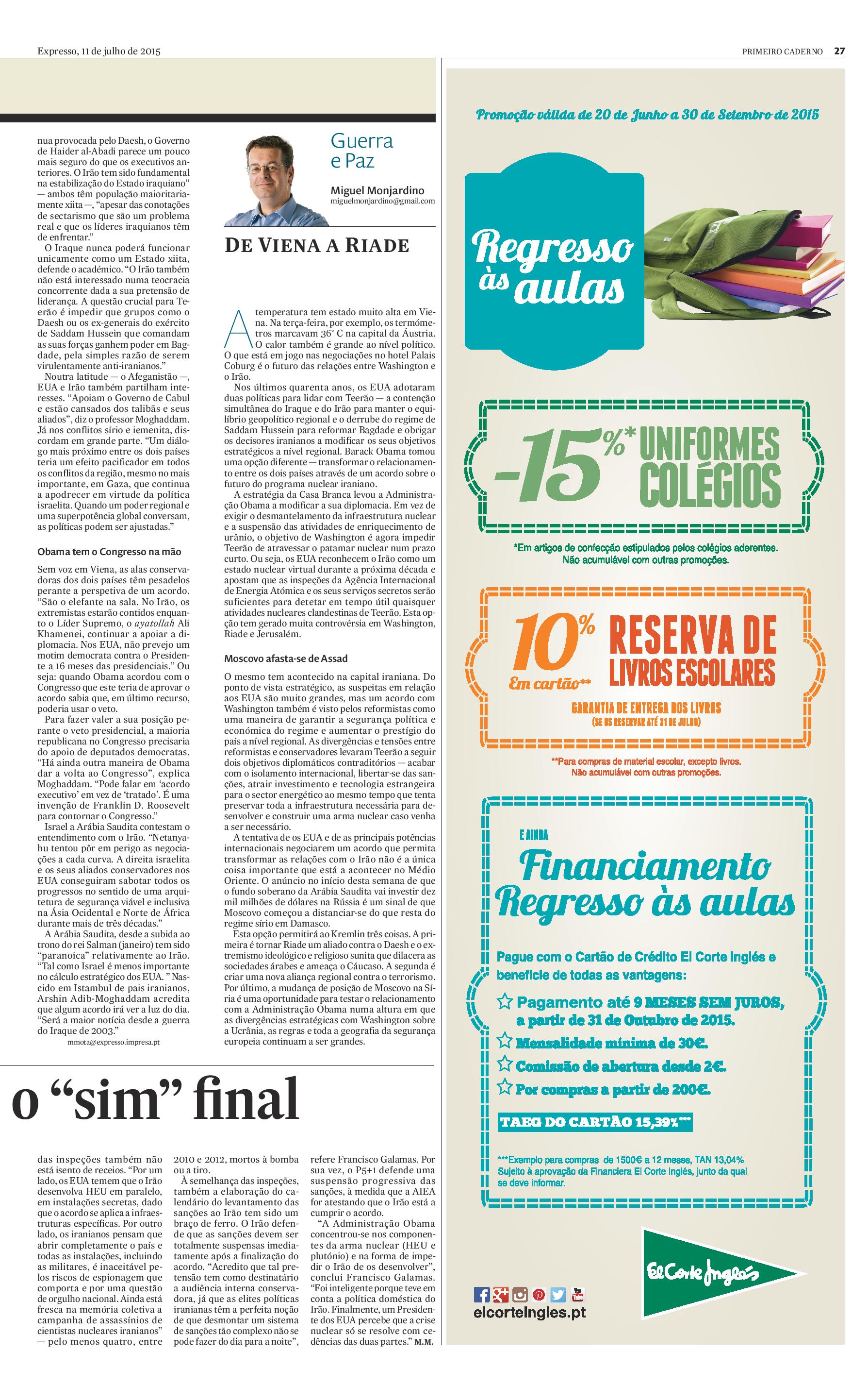 Artigo publicado no “Expresso”, a 11 de julho de 2015