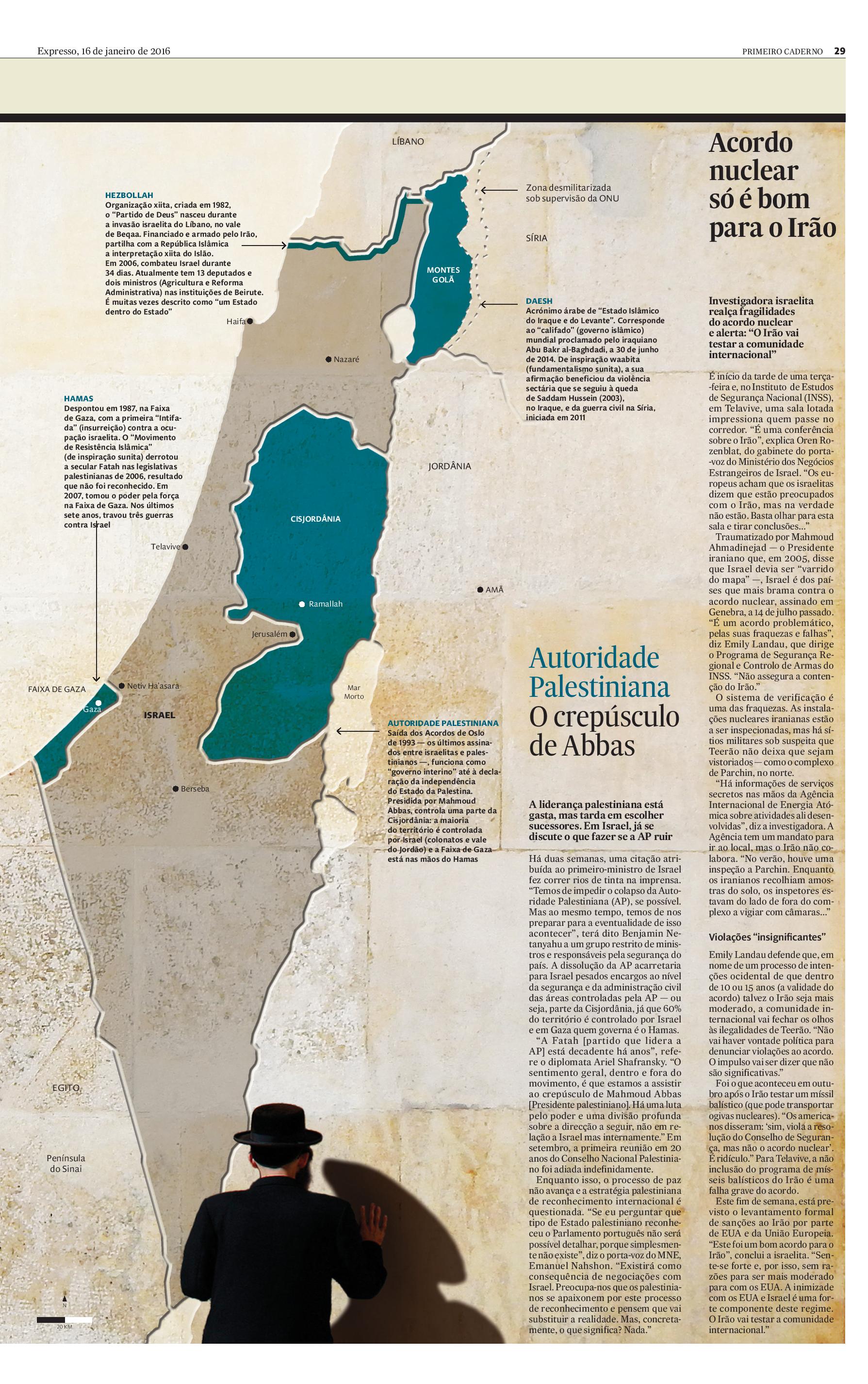 “A Fatah [partido que lidera a AP] está decadente há anos”, refere o diplomata Ariel Shafransky. “O sentimento geral, dentro e fora do movimento, é que estamos a assistir ao crepúsculo de Mahmoud Abbas [Presidente palestiniano]. Há uma luta pelo poder e uma divisão profunda sobre a direcção a seguir, não em relação a Israel mas internamente.” Em setembro, a primeira reunião em 20 anos do Conselho Nacional Palestiniano foi adiada indefinidamente.