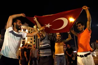 01h Alguns turcos seguiram o apelo do presidente Erdogan (cujo paradeiro é desconhecido até ao momento) e saíram para as ruas em protesto.