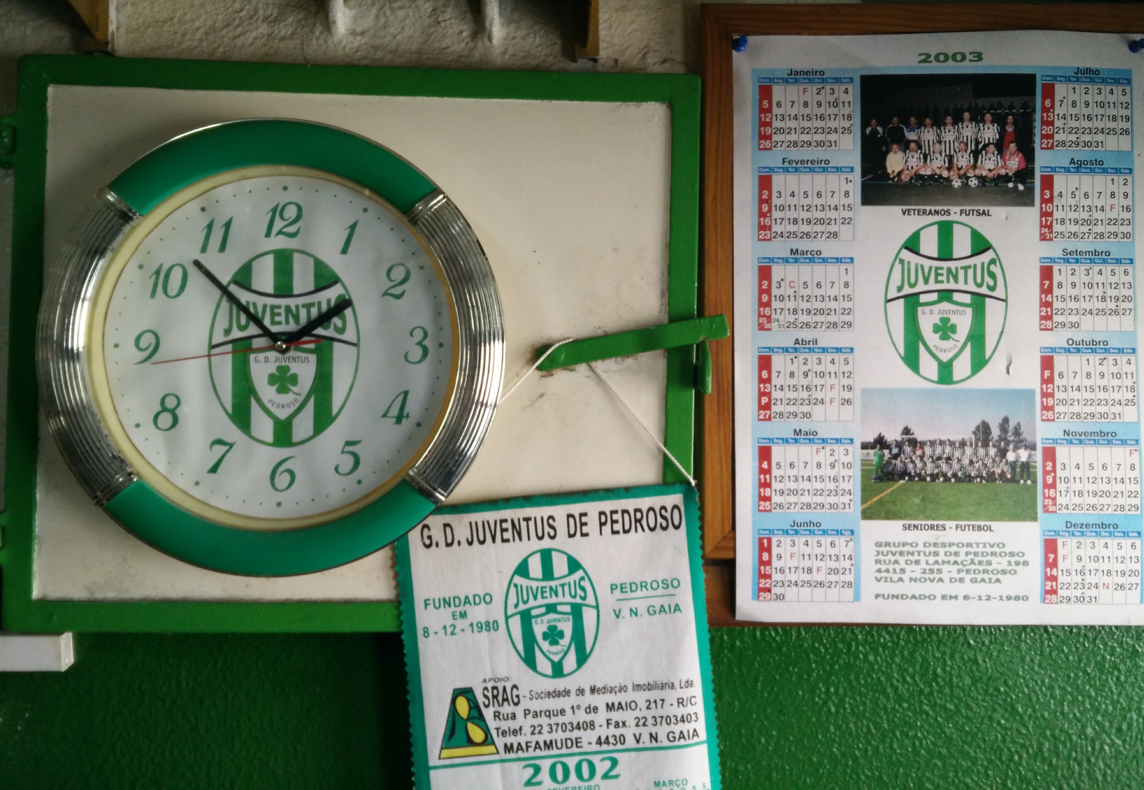 Em finais de 1980, em Itália, a Juventus de Dino Zoff, Marco Tardelli e Claudio Gentile — treinada por Giovanni Trapattoni — ia a caminho de mais um título no Calcio e seduzia adeptos em todo o mundo. “Era um clube mediático, o melhor clube italiano”, recorda. Em Pedroso, para os que estavam envolvidos na criação do clube, o nome Juventus era oportuno, ou não fossem todos jovens. “O símbolo da Juventus de Turim é preto e tem um touro, o nosso é verde e tem um trevo. Escolhemos o verde porque éramos jovens, éramos verdes, e o trevo porque procurávamos a sorte.” Do nome ao emblema, “tudo tinha ligação com a juventude.”