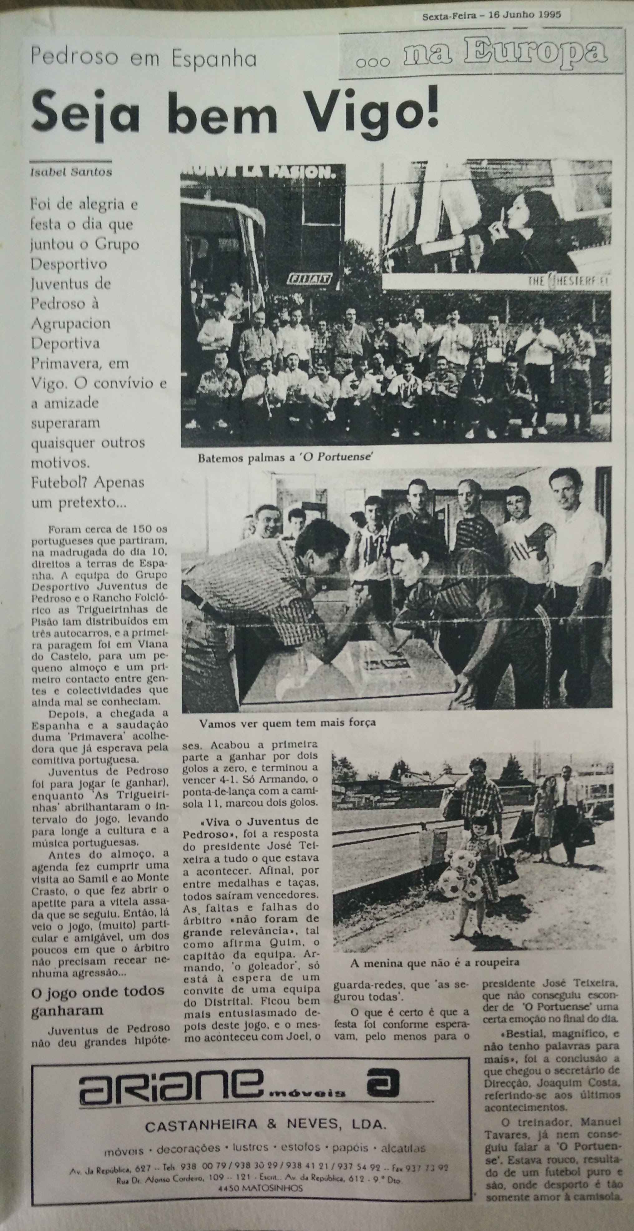 Fala com emoção dos jogos internacionais do Juventus, cerca de 40, em Espanha e com equipas espanholas em Portugal. Os mais especiais realizaram-se em Vigo. Todos os anos, a equipa portuguesa defrontava uma seleção de jogadores das várias equipas de futebol popular da cidade. O intercâmbio — ora lá, ora cá — deixou de se fazer em 2005, por questões financeiras. “Era uma coisa saudável. Os espanhóis gostavam muito de vir aqui. Pediam sempre que servíssemos frango assado — “Costa, queremos pito!”, uma coisa banal para nós. Lá, em termos gastronómicos, os primeiros anos foram difíceis, não nos adaptávamos à comida deles. Para nós, uma grande ida a Espanha era levar a lancheira, almoçar na praia do Samil (Vigo) e depois fazer o jogo. Independentemente do resultado do jogo, toda a gente se divertia. Era uma festa.”