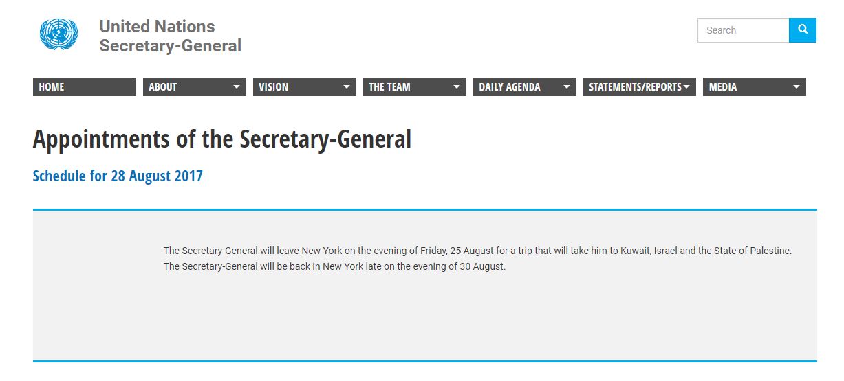 Quase cinco anos depois, a forma como foi divulgada a viagem de Guterres pela comunicação das Nações Unidas e nas palavras do porta-voz de Guterres, Stephane Dujarric — “ao Kuwait, a Israel e ao Estado da Palestina” — não é equívoca quanto ao assunto, ainda que na prática seja pouco consequente.