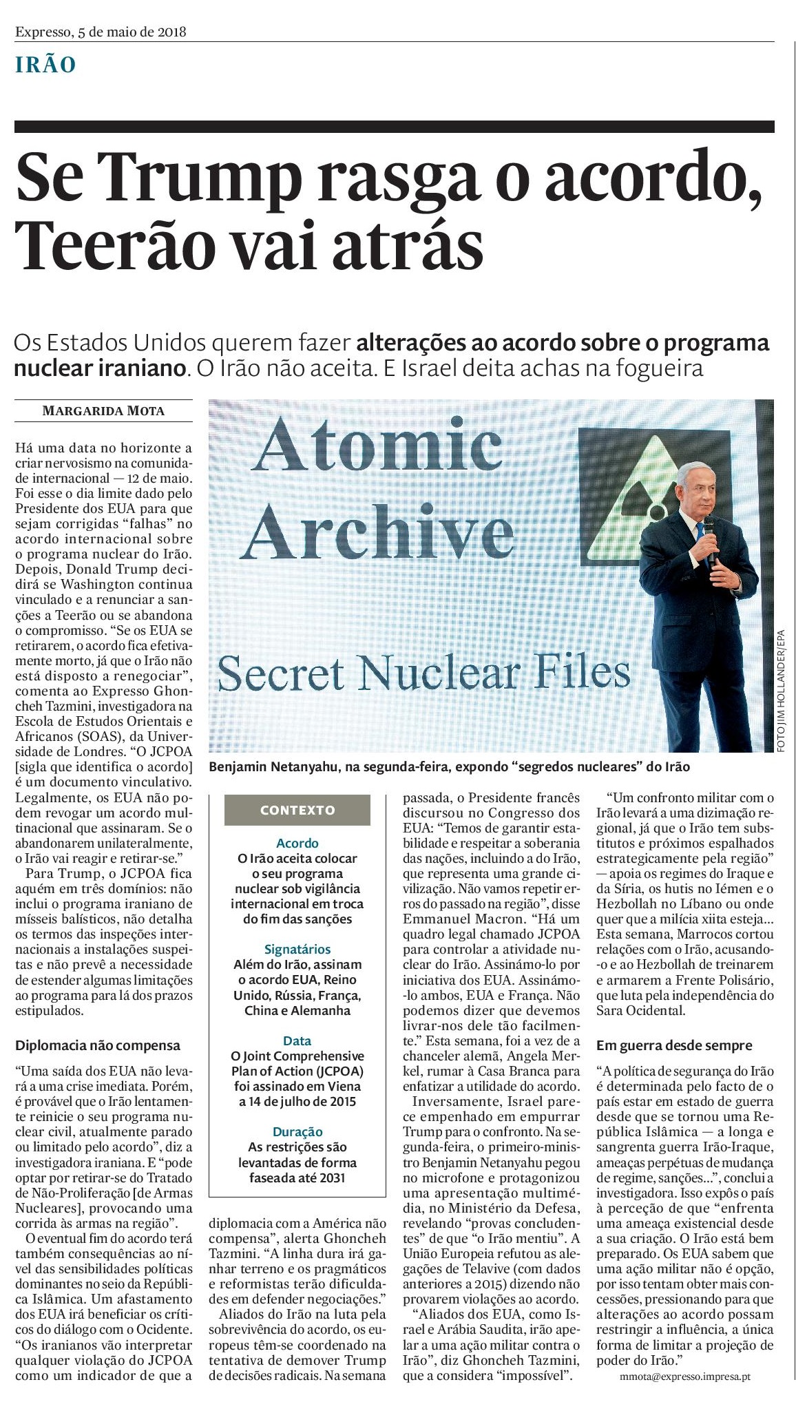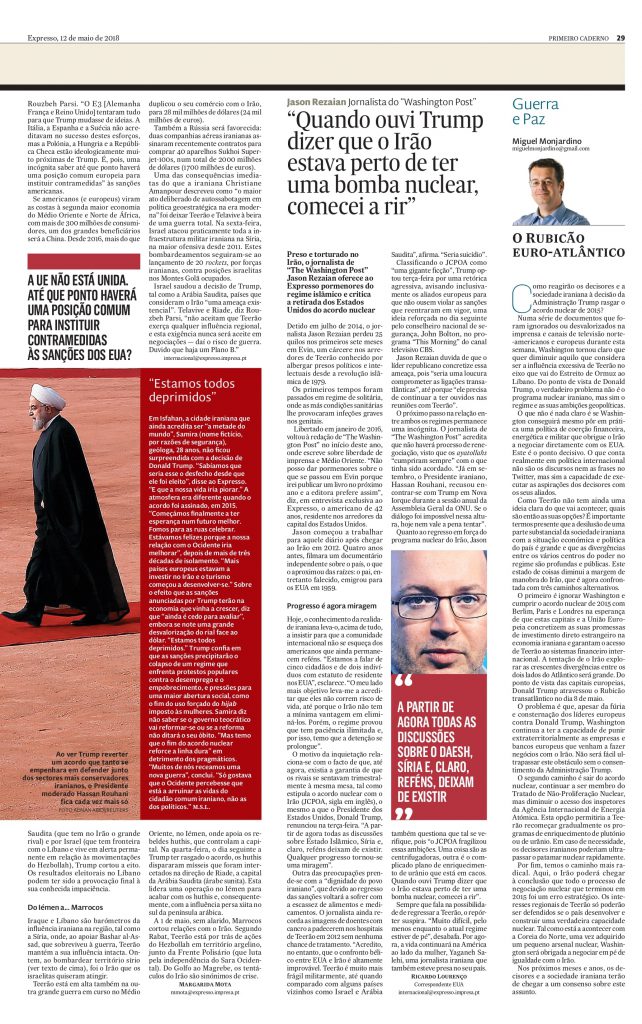 Artigo publicado no “Expresso”, a 12 de maio de 2018