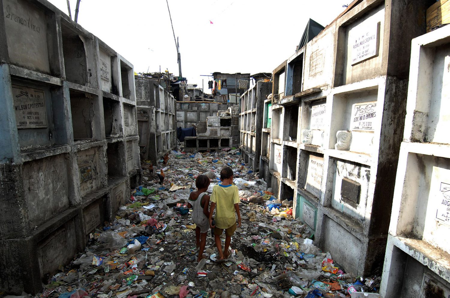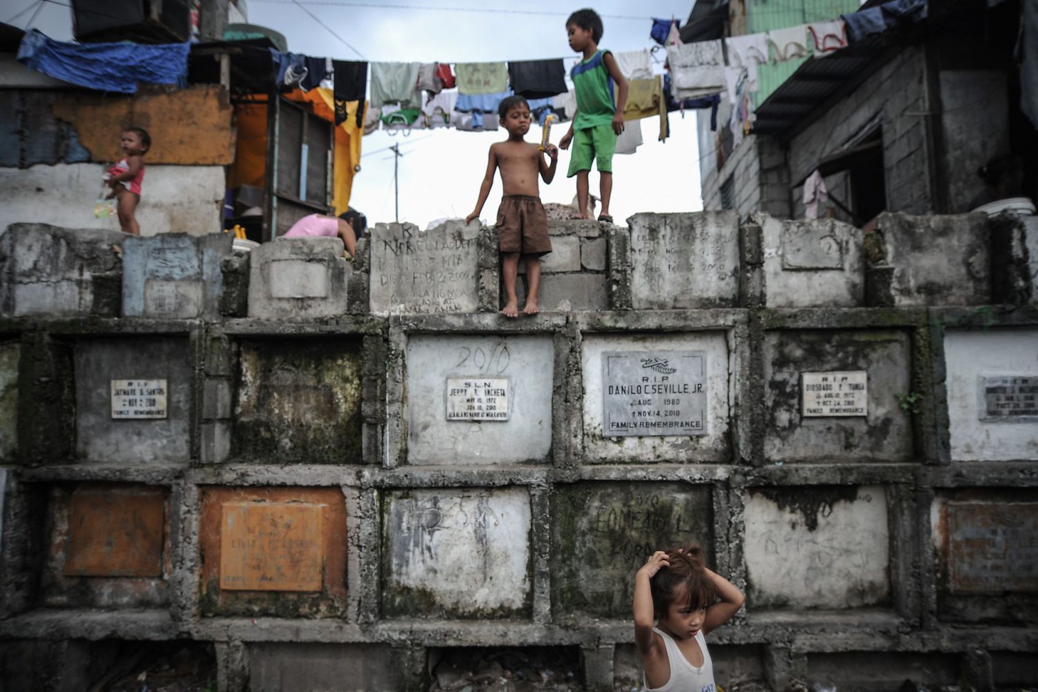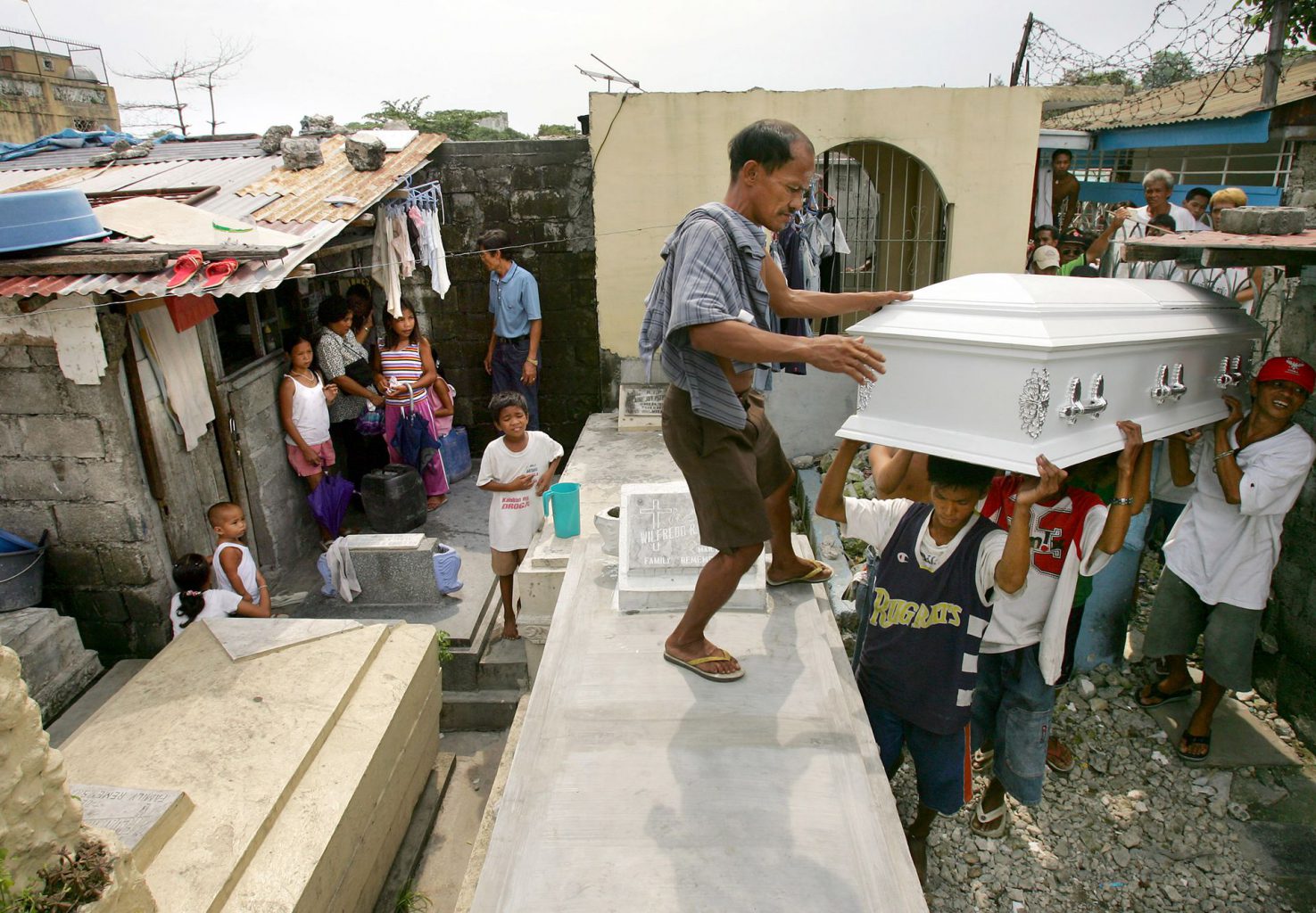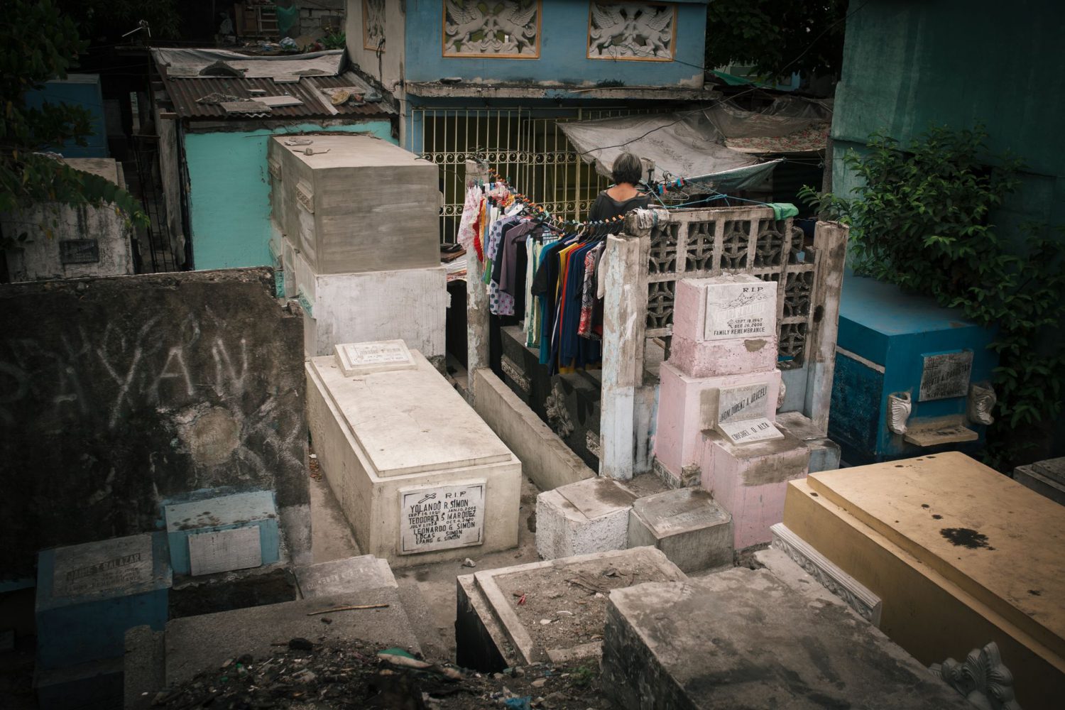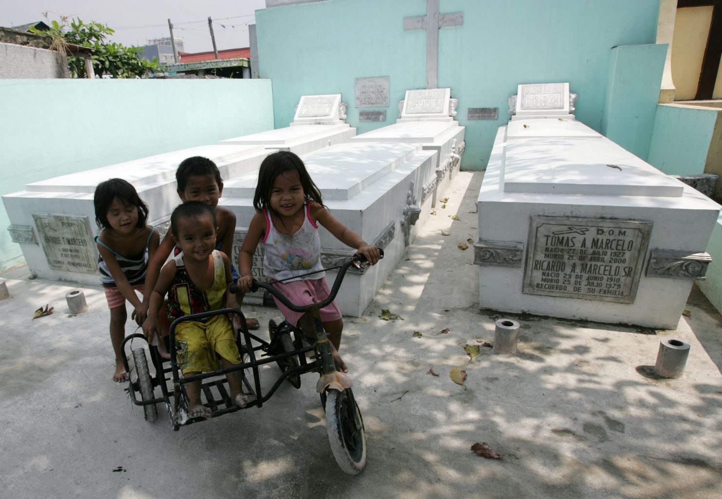 Aquela que é para milhões de filipinos a sua última morada é também, para uns quantos milhares, a única casa possível. Em Manila, famílias inteiras vivem no interior de cemitérios públicos. Muitos ali nasceram, ali tiveram filhos e enterraram os pais. Sem condições para viverem na cidade, refugiam-se onde lhes é garantido teto de forma gratuita.