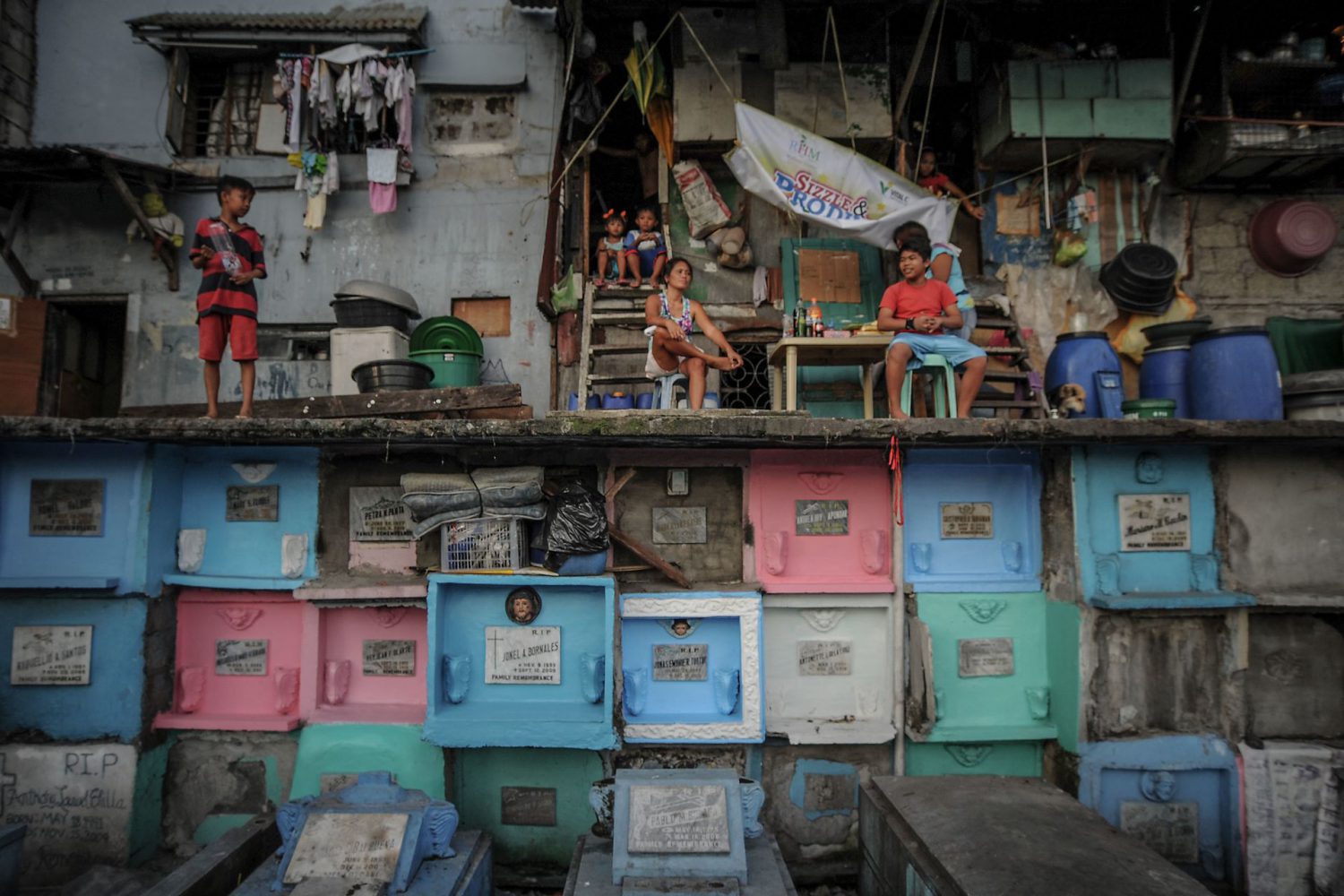 Viver no cemitério é o recurso possível para quem não tem meios para se aguentar na cidade. As Filipinas são um país de 110 milhões de habitantes onde, segundo o Banco Mundial, cerca de 22 milhões vivem abaixo do limiar nacional de pobreza. A capital, Manila, é uma das megacidades do mundo, com 12 milhões de habitantes: segundo o recenseamento de 2015, a cidade tem uma média de 71 mil habitantes por quilómetro quadrado.