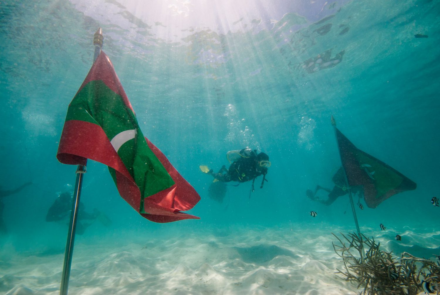 A cinco metros de profundidade, de máscara posta e comunicando por gestos, o Presidente, 14 ministros e o Procurador-Geral do país assinaram um “SOS desde a linha da frente” para enviar às Nações Unidas: “As alterações climáticas estão a acontecer e ameaçam os direitos e a segurança de toda a gente na Terra”, defenderam. “Temos de nos unir num esforço mundial para parar mais aumentos de temperatura.”