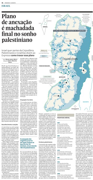 Em breve, a luta pela terra pode abrir novo capítulo. Desde quarta-feira, 1 de julho, o Governo de Israel tem carta branca para anexar formalmente 30% do território palestiniano que, na prática, já ocupa. Estão em causa áreas de colonatos e o vale do Jordão. O plano foi uma promessa eleitoral in extremis do primeiro-ministro Benjamin Netanyahu após dois atos eleitorais inconclusivos que mergulharam Israel num impasse político durante mais de um ano.