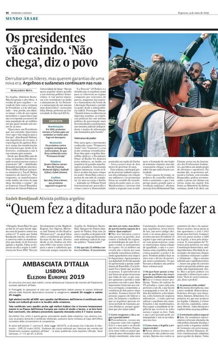 Os argelinos perderam o medo após surgirem rumores de que, aos 82 anos, o Presidente Abdelaziz Bouteflika, que vive confinado a uma cadeira de rodas, iria candidatar-se a um quinto mandato. As ruas encheram-se de contestação e Bouteflika foi forçado a sair de cena para todo o sempre.