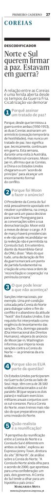 “Apesar do ambiente de paz vivido há uns anos, as cimeiras não resultaram no alívio de sanções que o regime norte-coreano esperava, nem num tratado de paz que pusesse fim à guerra na Coreia [1950-1953, concluída apenas com um armistício]”, continua. “A política norte-americana quanto a este assunto permaneceu focada na necessidade de desnuclearização da Coreia do Norte previamente a qualquer tipo de concessões.”