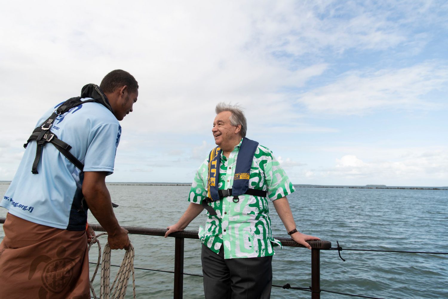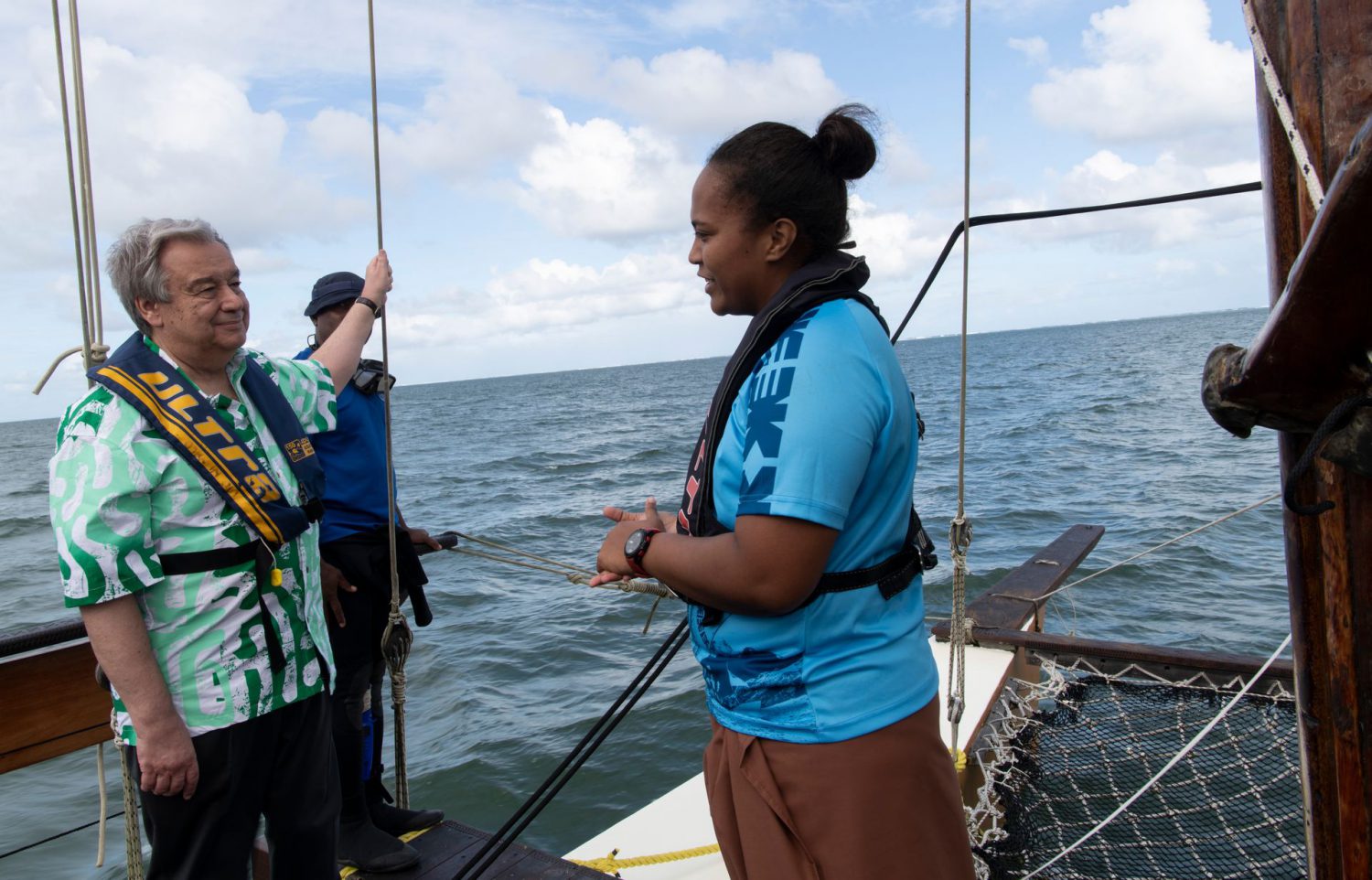 Guterres procurou também dar visibilidade a projetos locais verdes, como a embarcação “Uto ni Yalo”, uma embarcação tradicional polinésia que trabalha a vento e energia solar.