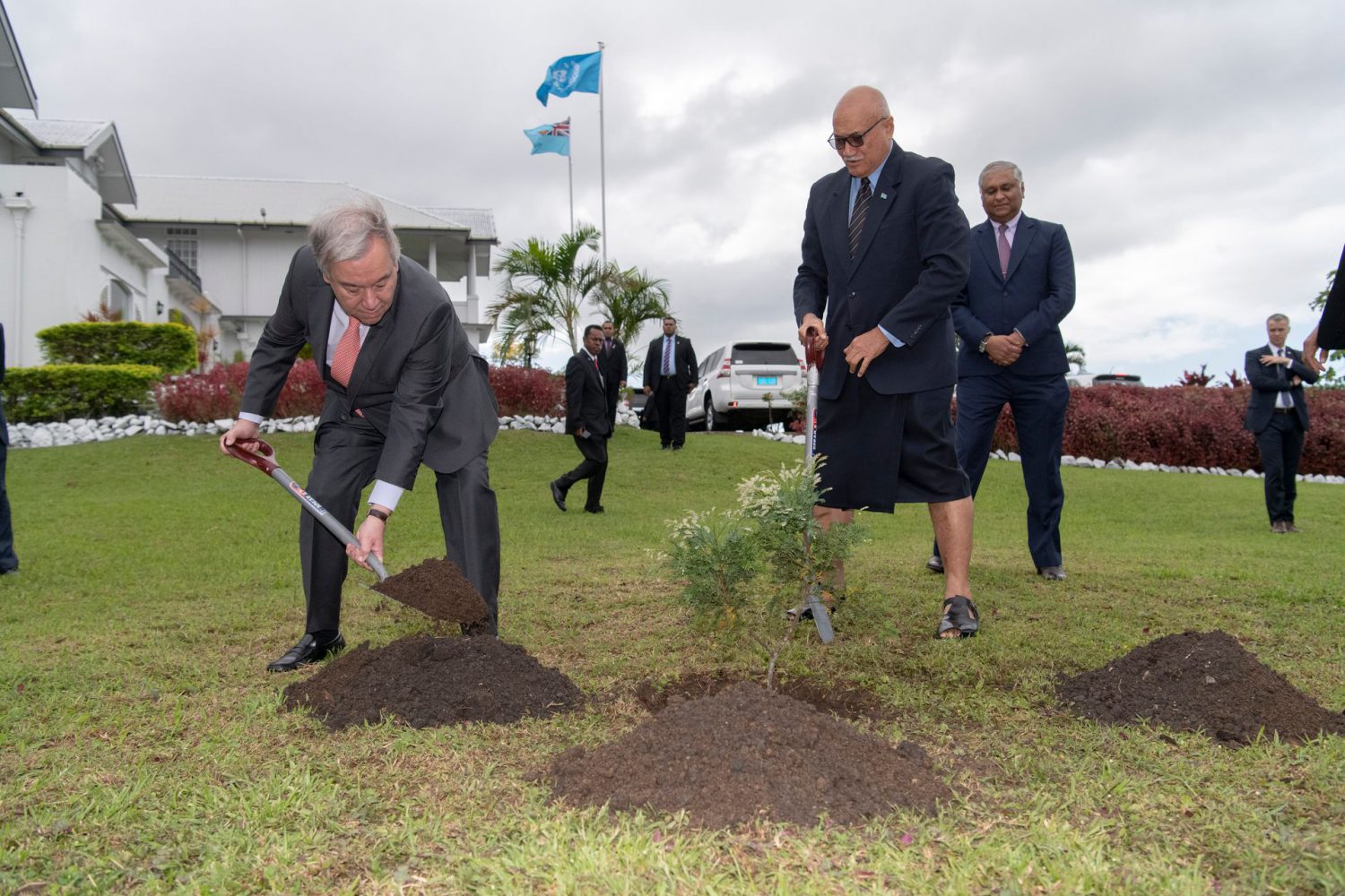 “Estou de partida para Tuvalu, uma nação insular do Pacífico onde o ponto mais alto tem menos de cinco metros [de altura]. Enfrenta uma ameaça existencial face à subida do nível do mar”, escreveu Guterres no Twitter, a 16 de maio. “Temos de impedir que Tuvalu se afunde e que o mundo se afunde juntamente com Tuvalu.”