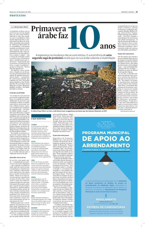 - TUNÍSIA: Dez anos após o movimento da Primavera Árabe, o país onde tudo começou continua sem consolidar a sua democracia e sem conseguir estabilidade. Invocando a urgência em combater a corrupção, em julho passado, o Presidente Kaïs Saïed dissolveu o Parlamento e concentrou em si os principais poderes do Estado. “A maioria da população está desiludida com a democracia, que não produziu os efeitos esperados de desenvolvimento económico e de combate à corrupção”, comenta Fabiani.